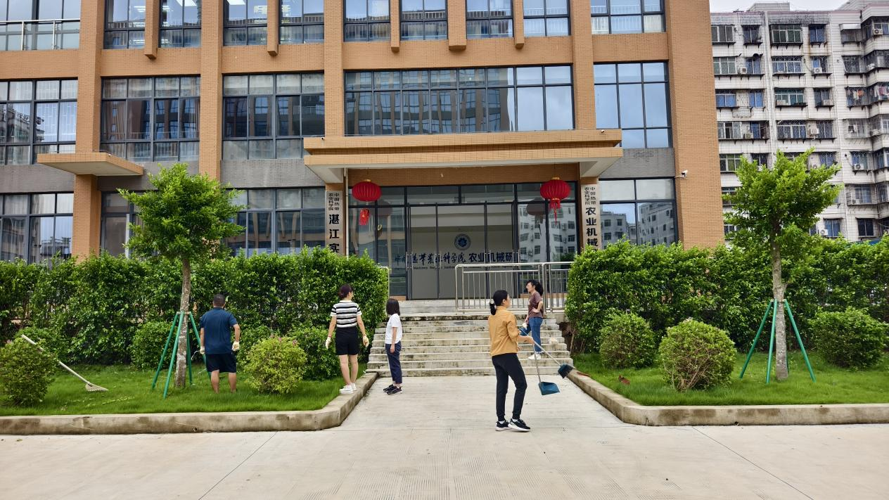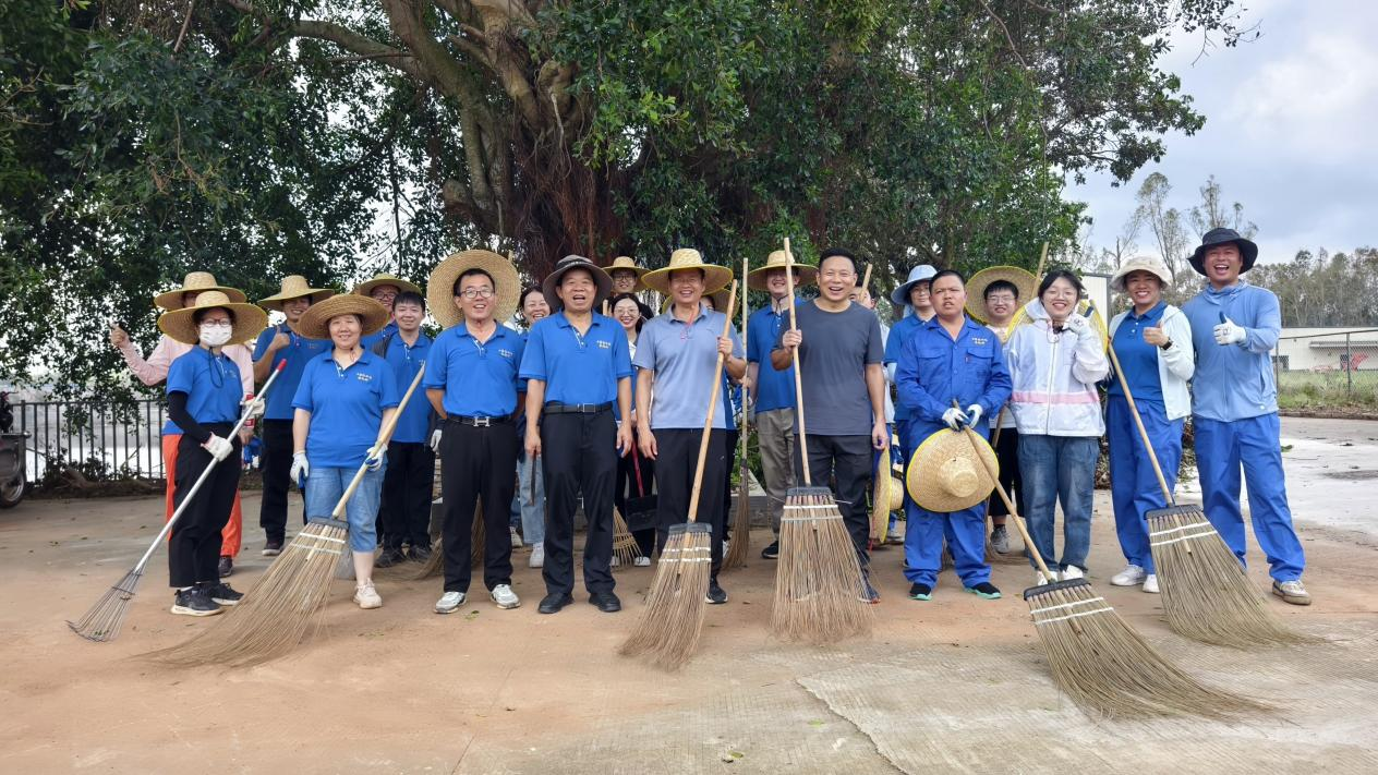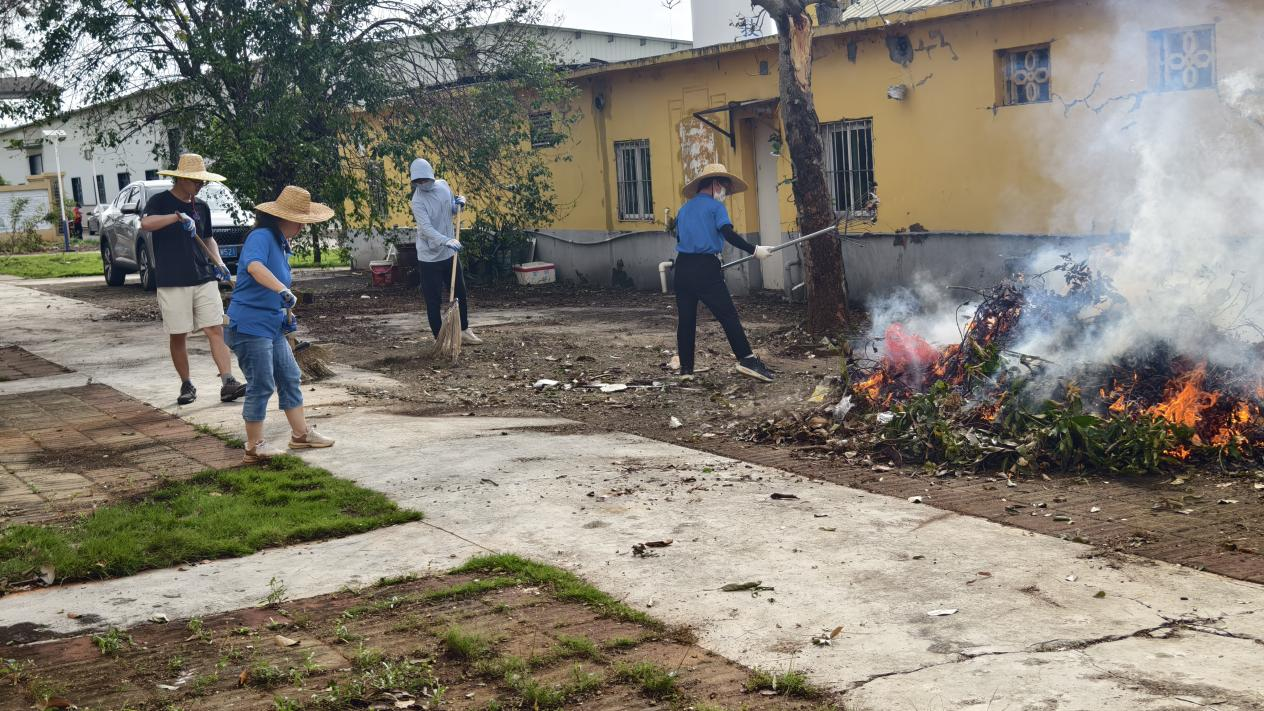 全员动员,凝聚合力攻坚难关。为加速灾后重建进程,10月9日上午,农业机械研究所号召全体干部职工赶赴受灾最严重的湖光所部,开展大规模集体劳动。现场呈现一派热火朝天的忙碌景象:有的职工手持油锯,精准切割横亘路面的倒伏树干;有的挥舞铁锹,奋力铲除淤积的枯枝杂物;还有人搬运散落枝叶,分类清理垃圾。各小组分工明确、密切配合,充分展现团结互助的精神风貌。经过连续奋战,原本杂乱的办公区、生活区逐渐恢复整洁。