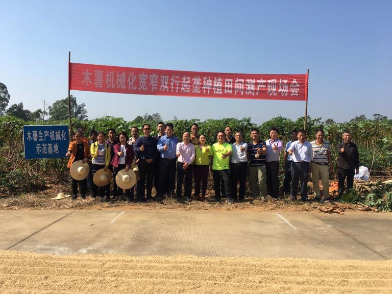 2019年11月10日,由中国热带农业科学院农业机械研究所、国家木薯产业技术体系北海综合实验站、北海市科技局、合浦县农业局、合浦县农科所等单位联合组织的“木薯机械化宽窄双行起垄种植田间测产现场会”在合浦县石湾镇木薯生产机械化示范基地召开。来自广西、海南、广东、江西各省区国内木薯行业知名专家亲临现场,针对木薯品种、种植模式、机械化效率与效益等多方面问题进行探讨及现场测产试验,取得圆满成功。
