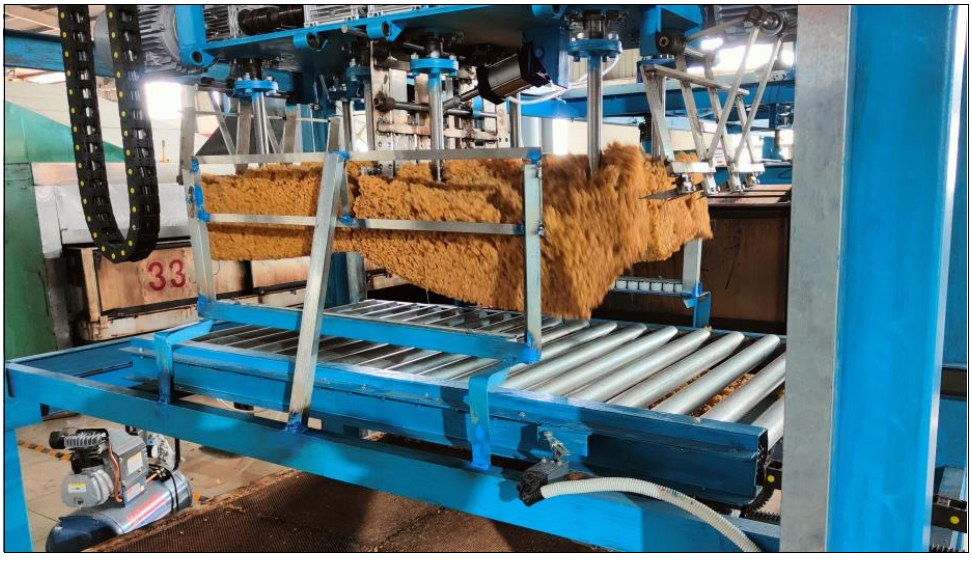 “天然橡胶干燥生产线全自动卸胶机器人”采用自动吊框机器人、推胶车机器人、卸胶机器人及自动装框机器人协同作业,将天然橡胶生产线出来干燥车中的胶包搬运到打包前的输送带上的作业实现全程自动化作业,与传统人工作业相比,可减少工人3-4人,降低生产成本50%以上。该技术依托海南大学、中国热带农业科学院农业机械研究所、海南天然橡胶集团股份有限公司联合实施。