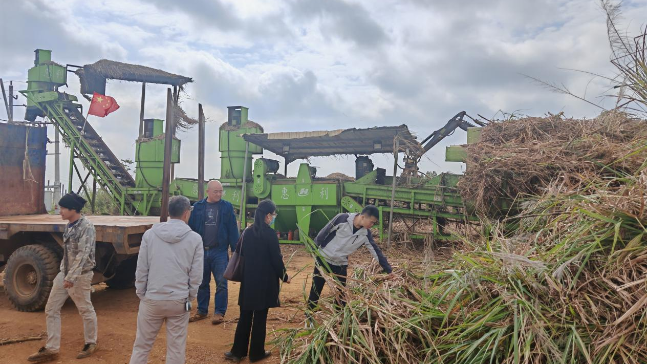 在新村甘蔗生产基地,团队联合广东海洋大学侯明鑫副教授及其技术骨干,现场观摩了甘蔗人工收获和分步式除杂装备作业情况。针对甘蔗收获难点痛点和机械化收获技术瓶颈,以及现有分步式除杂装备含杂率高和甘蔗叶高效利用等问题,双方深入研讨并提出应用机器视觉技术、蔗叶造粒技术等解决方案,达成联合申报科技项目、协同攻关机械化收获技术难题的合作意向。