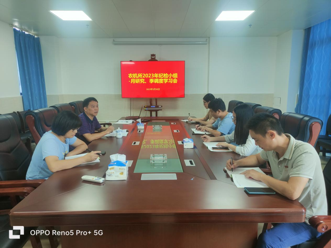 5月30日,农业机械研究所纪检小组召开2023年第3次“月研究、季调度”学习会,副所长、纪检小组组长方程主持会议,传达学习习近平总书记给中国农业大学科技小院学生的回信精神、院全面从严治党工作会议上院纪检组长何建湘的讲话要求、中共中国热带农业科学院党组关于印发《巡察共性问题十条》和《审计共性问题二十条》的通知等主要内容。所纪检小组成员、各党支部书记和纪检委员、财务办成员参加了本次“月研究季调度”学习会。